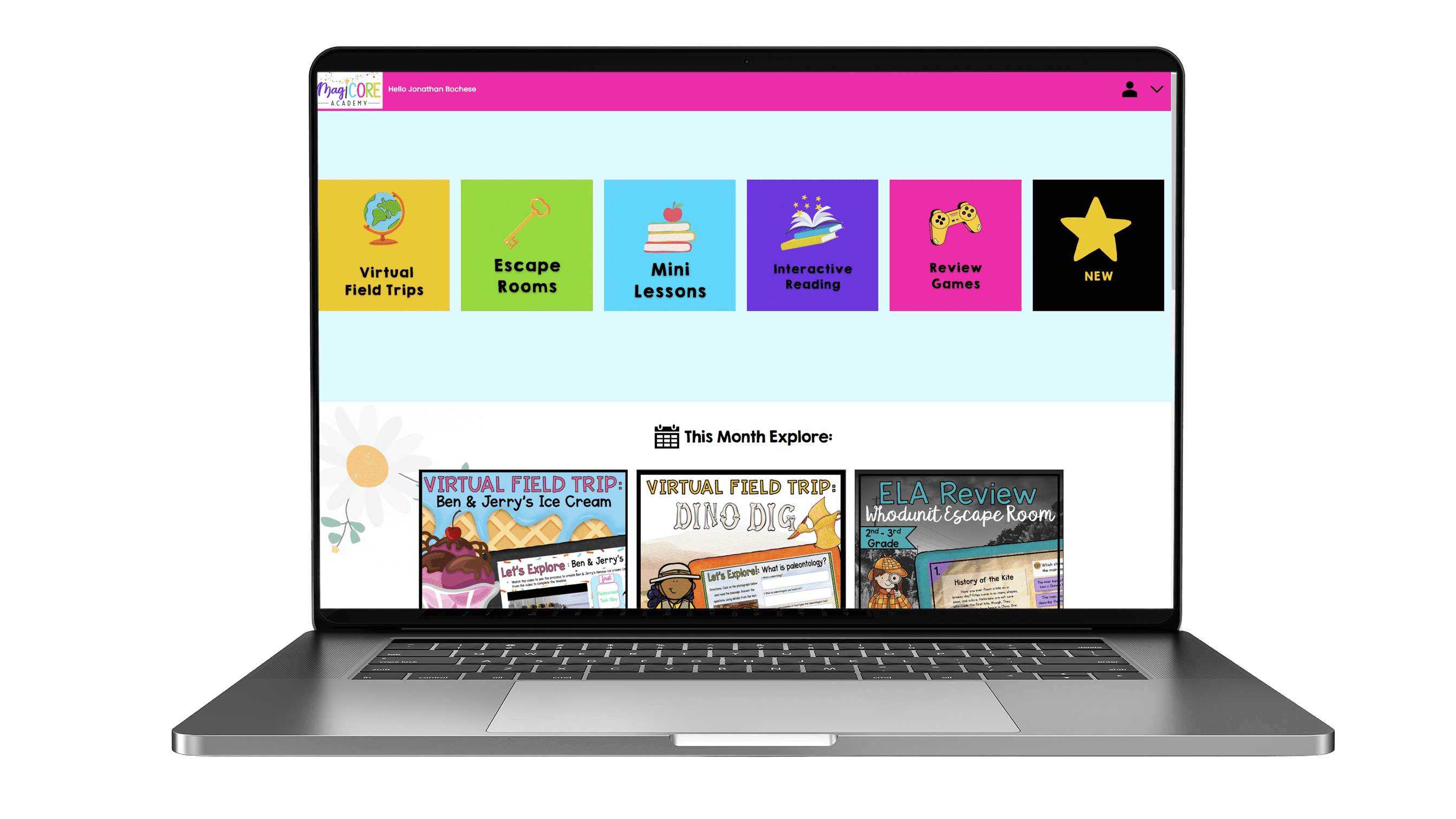 With MagiCore Academy you get unlimited access to a growing library of Virtual Field Trips, Reading Escape Rooms, Math Escape Rooms, Interactive Readers, Digital Lessons, and Learning Games.